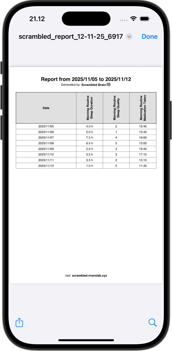Scrambled Brain - Insights lets you create custom symptom trackers for each patient. They use Scrambled Brain to log daily. You get clean PDF reports showing what matters.